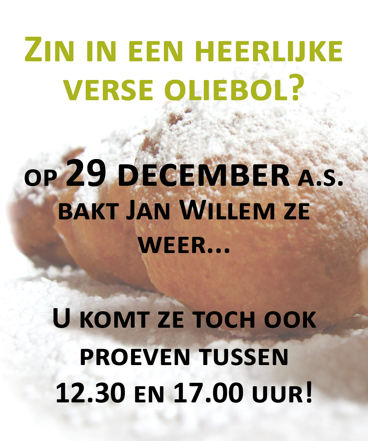 Zondag 29 december is het oliebollendag op de Priesnitzhoeve. Komt u ook proeven vanaf 12.30 uur?